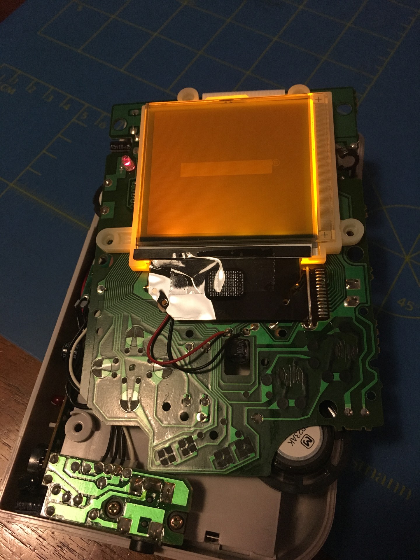 A Game Boy orange backlight and bivert mod