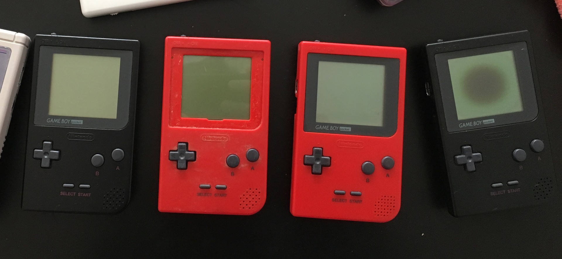 After the good experience I had with the Japanese Game Boy games from Japan 4 You I decided to pickup some cheap Game Boy Pockets. They list a lot of items as ‘not working’ or ‘read item condition’ for a low price. I’m not really interested in buying perfectly fine and new hand helds, I want to fix something, so I went for three listed as ‘not working’ and one as ‘read item condition’ but with an obvious burnt front polarizer. I paid about 70 euro for the 4 Pockets, which includes 20 euro import duties for The Netherlands. It’s not exactly cheap, but I guess it’s decent.