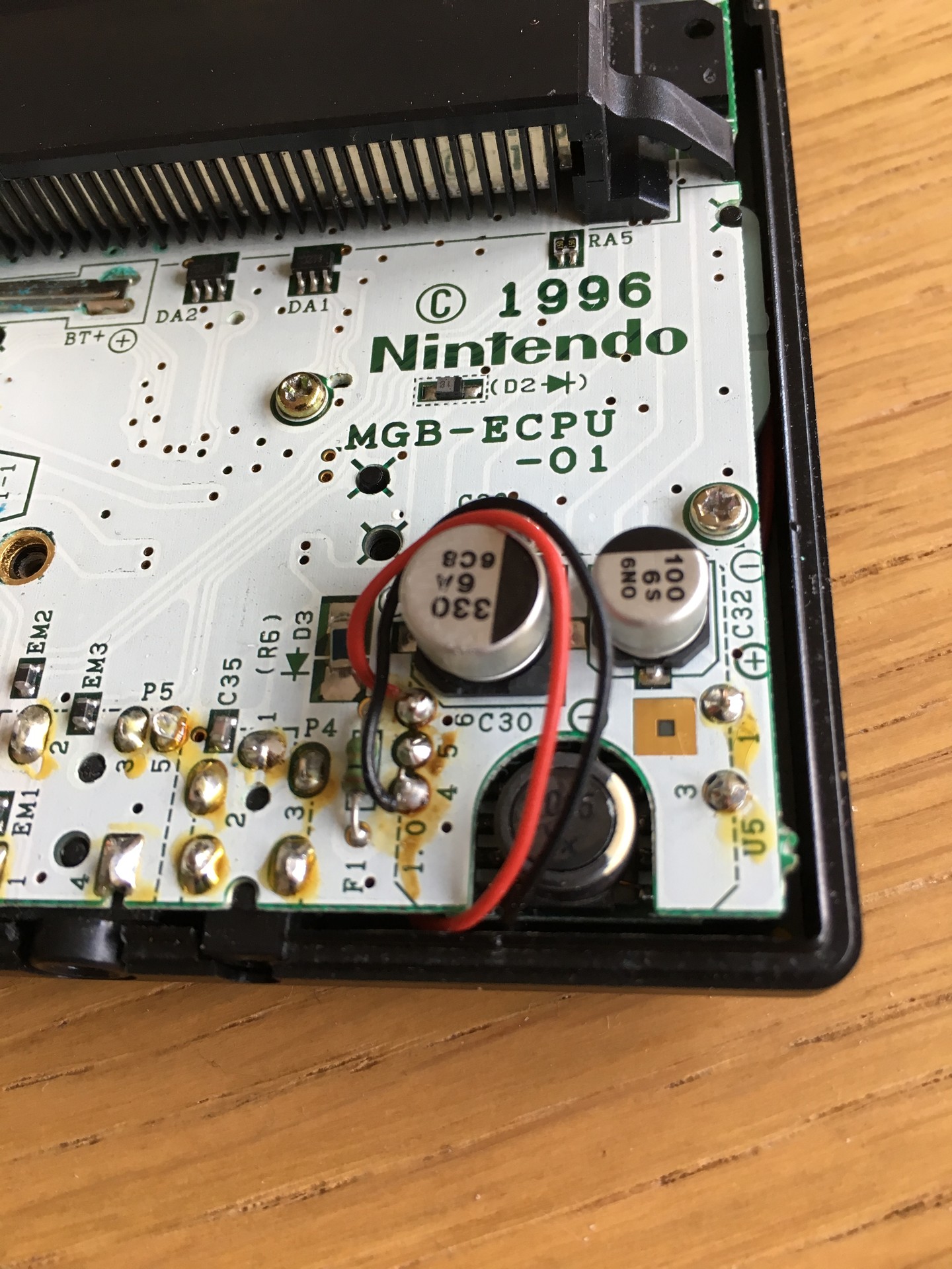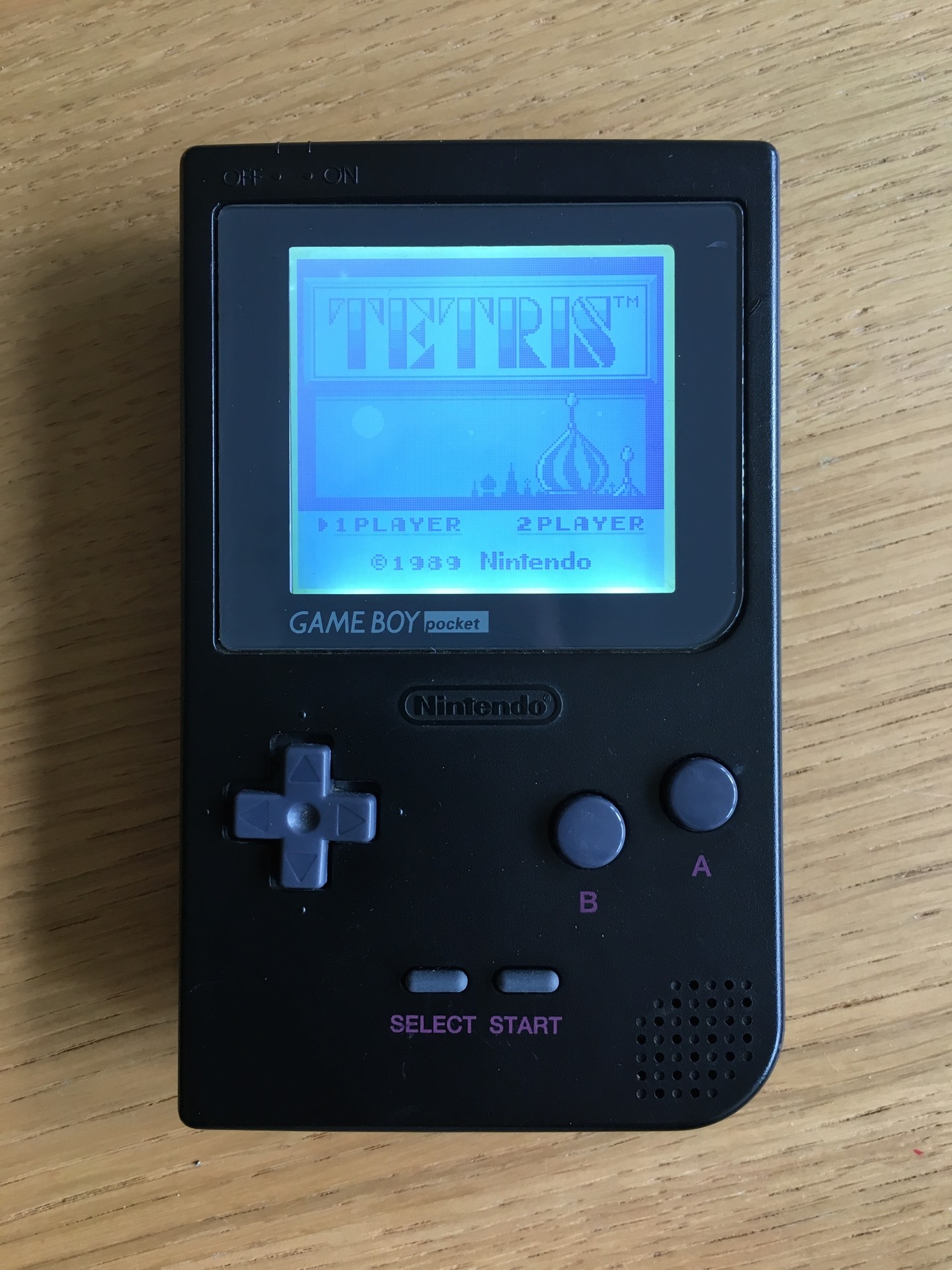 The Game Boy Pocket is really small and light, which is good when you want to carry it around but not so good for extended gaming sessions. The Pocket is powered by 2 AAA batteries which have less capacity than AA, resulting in less playing time. The viewing angle of my ‘fixed’ console is a little bit off, resulting in a less than perfect contrast. I’m thinking it has to do with the polarizer filters I used, maybe the result would be better if you only replace the back polarizer. It’s decent, but not perfect.