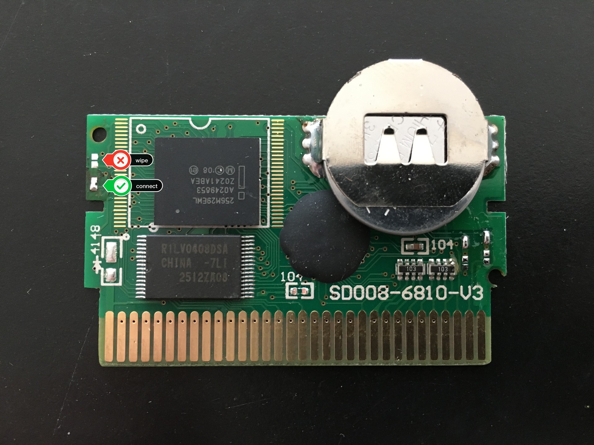 I found that these carts need a small modification in order to work. If you don’t perform this modification, it will appear as if the Joey flashes the cart but nothing really happens. My cart was labeled SD008-6810-V3, there might be different versions out there but the procedure is likely the same.