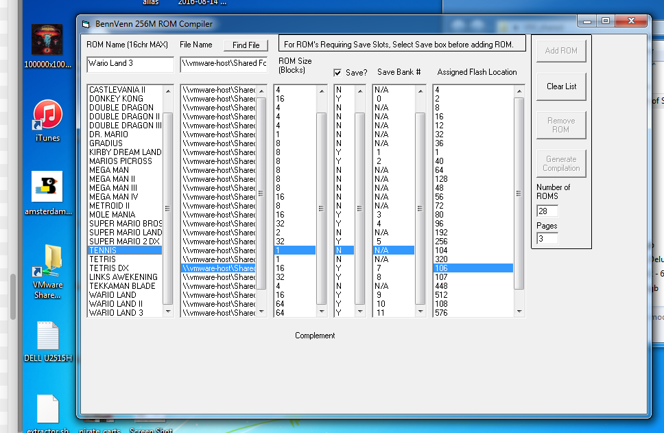 Now, in order to compile roms you’ll need to use BennVenn’s Multi-ROM compiler which you can find on his download page. Don’t forget to check the ‘save?’ checkbox if your game has a save ability.